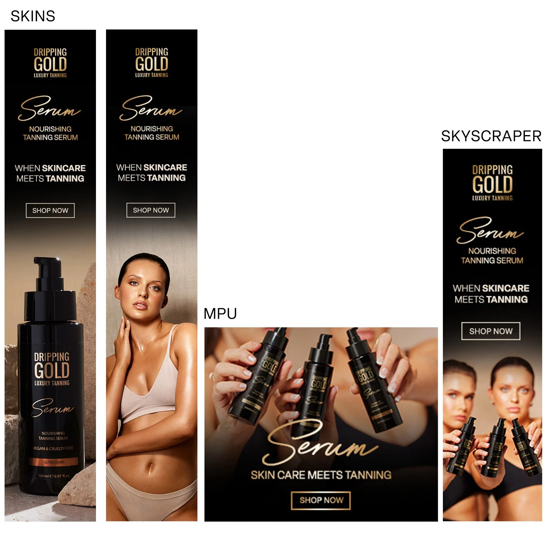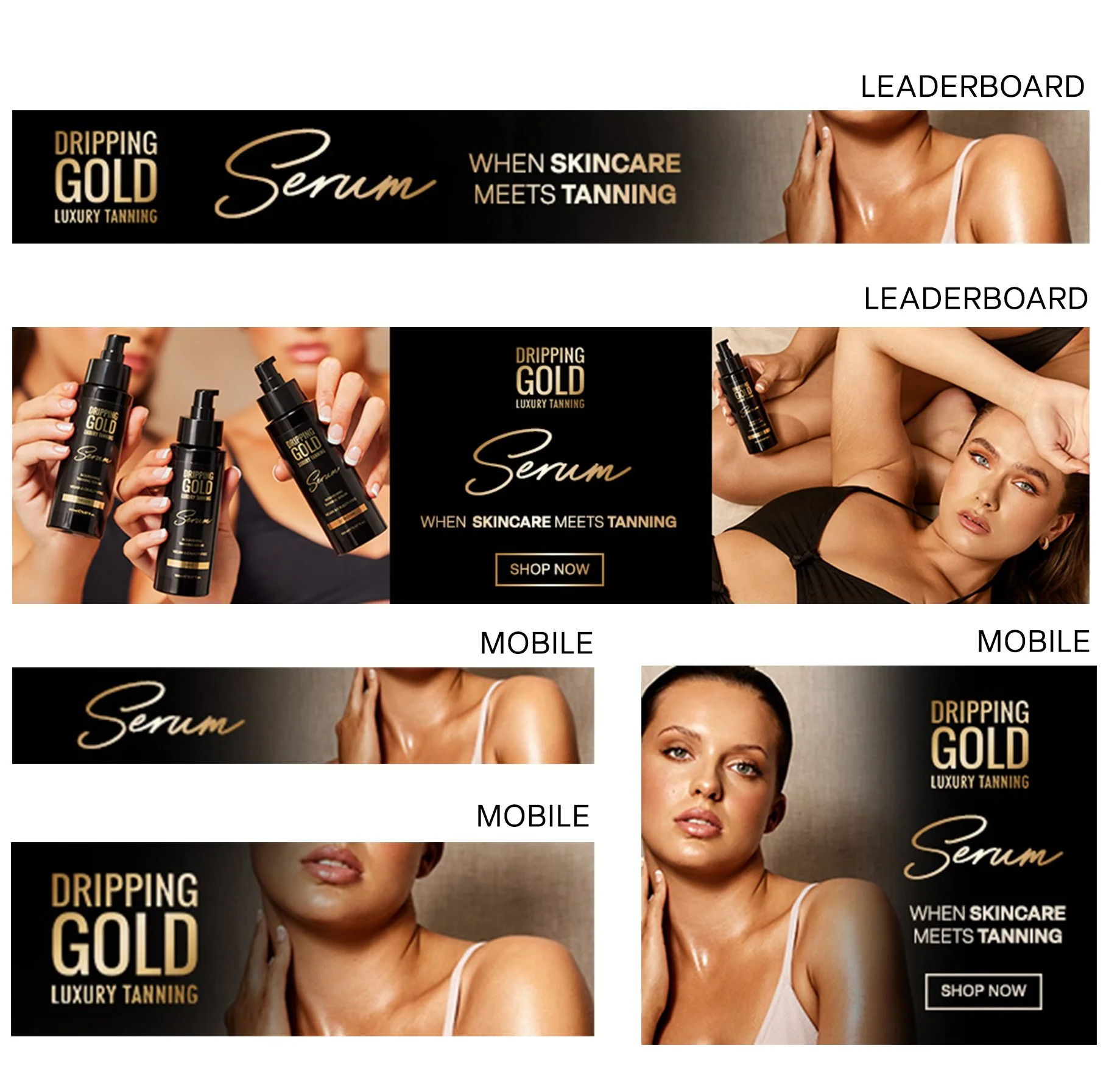 The Serum Launch was Dripping Gold’s biggest product launch of 2023. Within the graphics, significant emphasis was placed on highlighting its innovative "skincare meets tanning" formula. I created printed press card for influencer gifting and also for customer education in our Dundrum store. I also designed web assets for a graphic takeover of the goss.ie website which was displayed on goss.ie for 5 days.